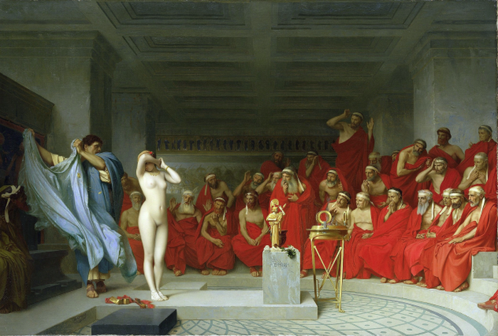 Пожалуй, одна из самых известных гетер в Древней Греции — Фрина, настоящее имя которой было Мнесарета (что обозначает “помнящая о добродетелях”). Один из отвергнутых поклонников обвинил Фрину в безбожии. В суде ее защитником был знаменитый оратор того времени Гиперид. Когда его речи не произвели впечатления на судей, Гиперид просто сдернул с Фрины одежды. Судьи сразу же оправдали ее, поскольку “столь совершенное тело не может скрывать несовершенную душу”.