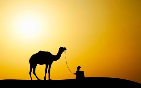 Силуэты верблюда и погонщика в пустыне Тар на северо-западе Индии. Фото: Caters News