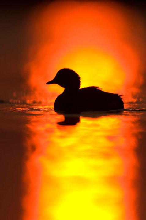 Маленькая птица поганка на рассвете. Фото: Caters News