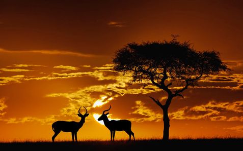 Импала, или чернопятые антилопы около дерева акации крученой в кенийском заповеднике Масаи-Мара. Фото: Caters News