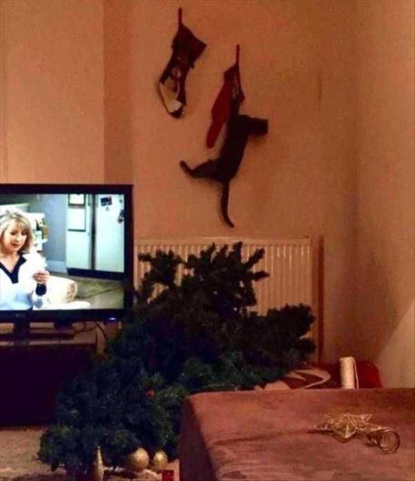 Головная боль для всех, у кого есть коты. Елка и котик в одной квартире — вещи несовместимые.