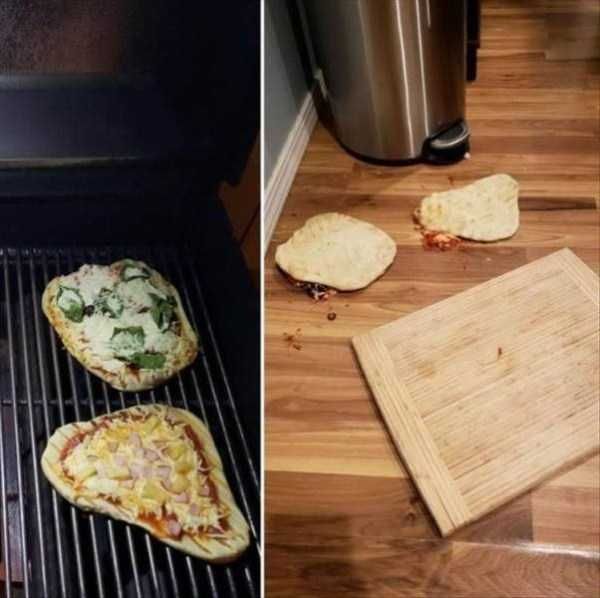 Для земного притяжения нет ничего святого. Даже пиццу не пощадило! Все старания хозяйки насмарку!