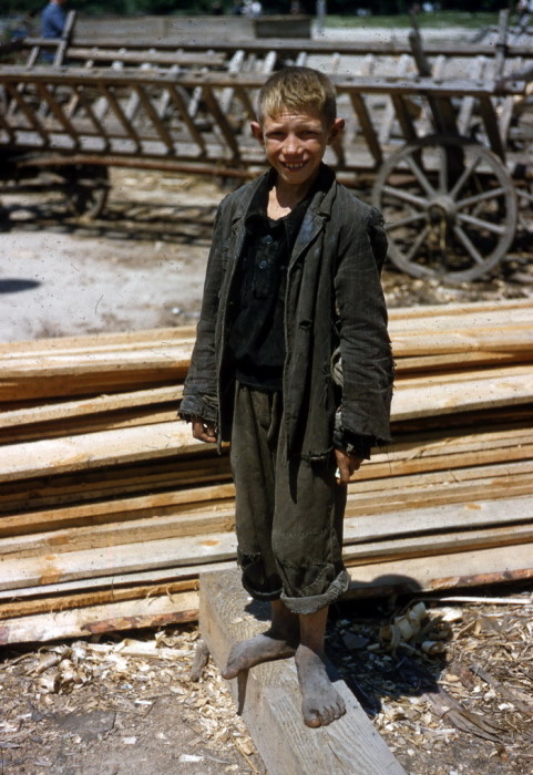 Мальчик подрабатывает на стройке в 1950-х годах.