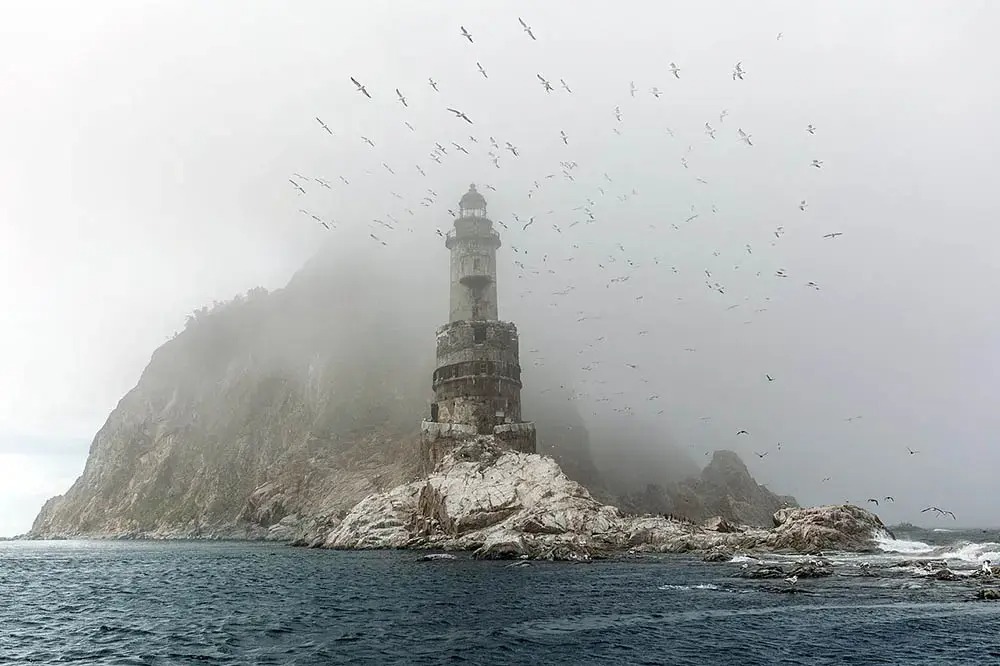 Заброшенный с 2006 года маяк на мысе Анива, который построили японцы в 1939 году. Сахалин, Россия.