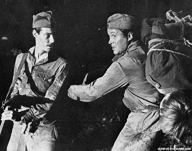 Они переходят через линию фронта. Фильм снимали в лесу, в холодное время года. Актерам приходилось нырять в болото. Они промокали до нитки. А Виктор Павлов, на тот момент, только вышел из больницы, после воспаления легких. Но Станислав Говорухин решил ее убрать, тк это раскрыло бы всю интригу, а сцена, где встречаются Левченко и Шарапов у главаря Горбатого, была бы бесполезной.