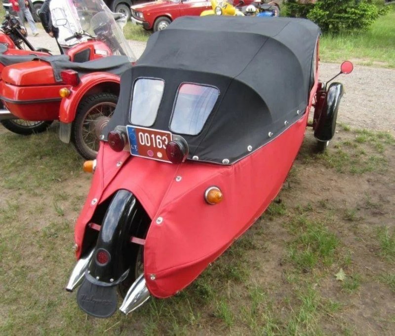 Мотоциклетный двухтактный мотор установлен в задней части, коробка передач четырёхступенчатая, цепной привод на единственное заднее колесо. Любопытной особенностью было отсутствие задней скорости и реверсного редуктора, поэтому самым простым вариантом было откатить мотоколяску вручную. На случай, если это было затруднительно, предусматривалась специальная опция – мотор можно было запустить в обратную сторону, и таким образом, ехать назад.