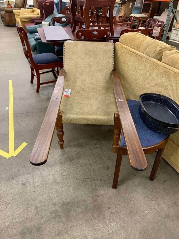 Ответ: Похоже на кресло для отдыха фермера/плантатора. Вы кладете на эти поручни больные опухшие ноги после того, как весь день сидите на лошади. Вот почему спина тоже наклонная.