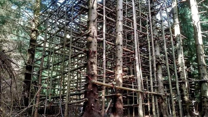 Похожая на леса конструкция, найдена в Чехии. Рядом была площадка для пейнтбола/страйкбола. А это для чего?