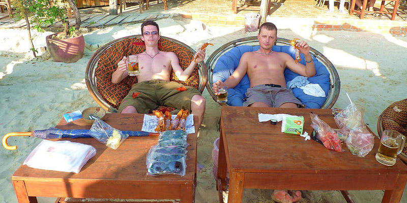 Лаос: одно ледяное пиво Lao, один сендвич с беконом и сыром, 4 рулона туалетной бумаги, 2 кружки сваренного кофе или 2 рогалика в Scandinavian Bakery, 16 средних бананов, час интернета (в туристических местах только полчаса), 3 литра питьевой воды, два круассана.