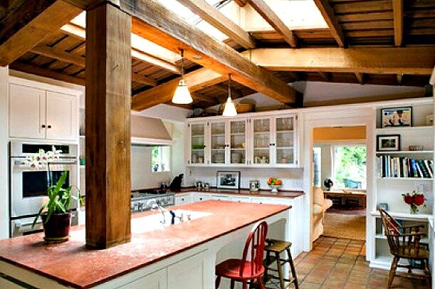 Его украшают створчатые окна и потолки с открытыми балками, а пол выложен аутентичными плитами из терракотовой керамики.