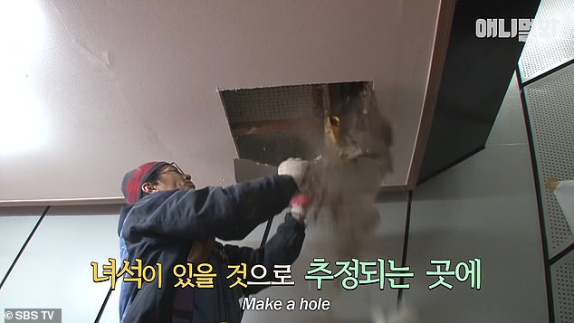 Чтобы добраться до котика специалистам пришлось несколько часов крушить стены и потолки в магазине, постоянно сверяясь со строительными чертежами и схемами коммуникаций. Испугавшись шума, кот забился в угол за подвесным потолком, благодаря чему его и удалось поймать и извлечь.