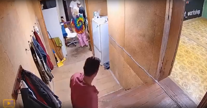 Наделавшее шуму видео — это нарезка с записей камер наблюдения, сделанных в течение нескольких дней. Действие разворачивается на лестнице, которая соединяет две части квартиры, скорее всего, коммунальной. Она достаточно крутая, без перил, к тому же имеет явное кустарное происхождение.