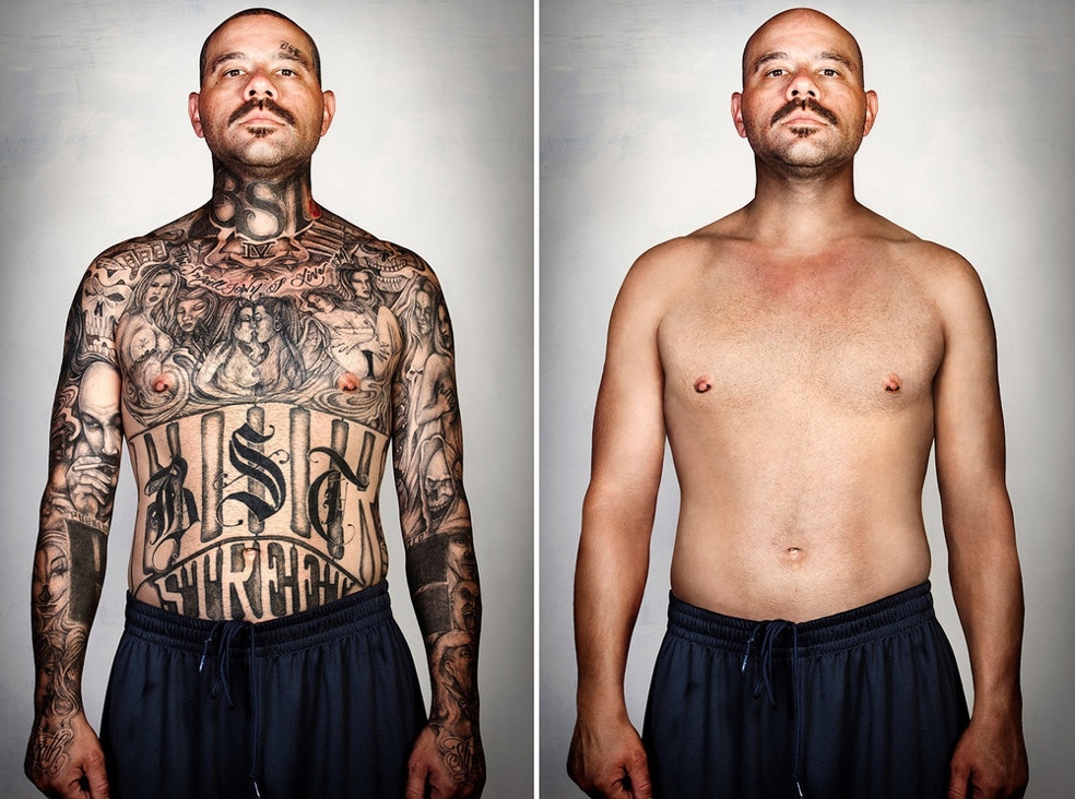 Стив Бартон – английский фотограф и путешественник, автор фотопроекта «Глубоко под Кожей – Взгляд за Татуировки». Ему понадобилось два года и в общей сложности более 400 часов чистого времени для того, что бы заретушировать татуировки нескольких бывших латиноамериканских уголовников. Затем Стив продемонстрировал своим моделям результат, записав на видео их реакцию.