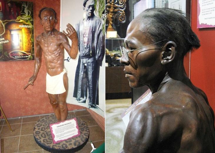 Масакиши, художник родом из Китая, жил в конце 19-го века. Когда он узнал, что умирает от туберкулеза, то решил оставить своей девушке ценный подарок — свою скульптуру из огромного количества элементов из темного дерева, которые соединены с помощью специальной детали, которая называется «ласточкин хвост», и клея. На теле художник сделал микроскопические отверстия, чтобы вставить волоски, которые он брал со своей головы. Масакаши удалил все зубы, чтобы имплантировать их в статую. Своей статуе он отдал очки и одежду. После того как статуя была выставлена в музее, зрители не могли различить, где настоящий Масакаши, а где его статуя, настолько они были похожи. Художник умер через 10 лет. Во время землетрясения в Калифорнии в 1996 году статуя была повреждена и теперь хранится в Лондоне.