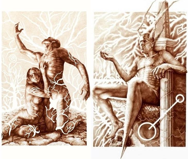 За последние 15 лет Спазук создал несколько сложных композиций полностью из копоти, включая самые мелкие образы птиц, насекомых и танцующих фигур, которые дорабатывал перьями, цветами и огнем.