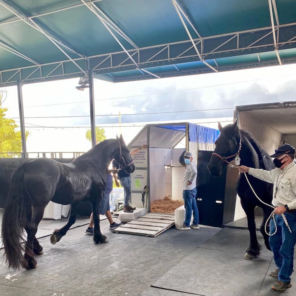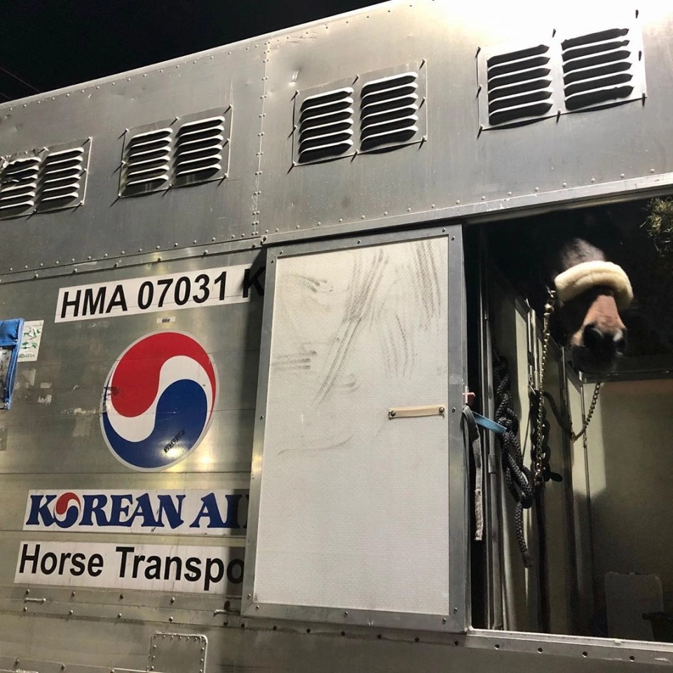 Их поездка начинается с погрузки в трейлер и перевозки от родной конюшни к аэропорту, который специализируется на транспортировке животных.