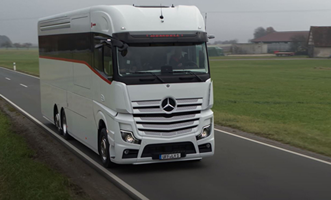 Большинство автодомов люксовой категории отличаются тяжеловесным старомодным стилем в отделке. Они массивны и неуклюжи внешне, но Motorhome M совсем другой. Отчасти машина напоминает футуристичный космический лайнер на шасси Mercedes Actros.