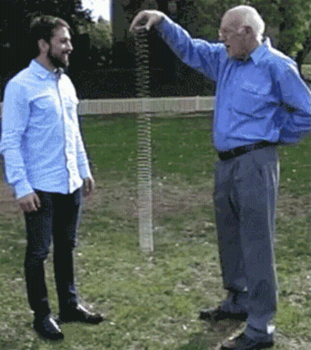 Пружинка падает в замедленной съемке